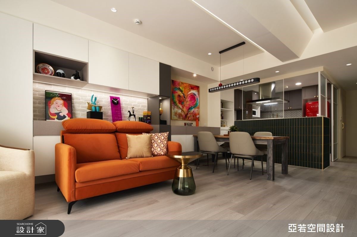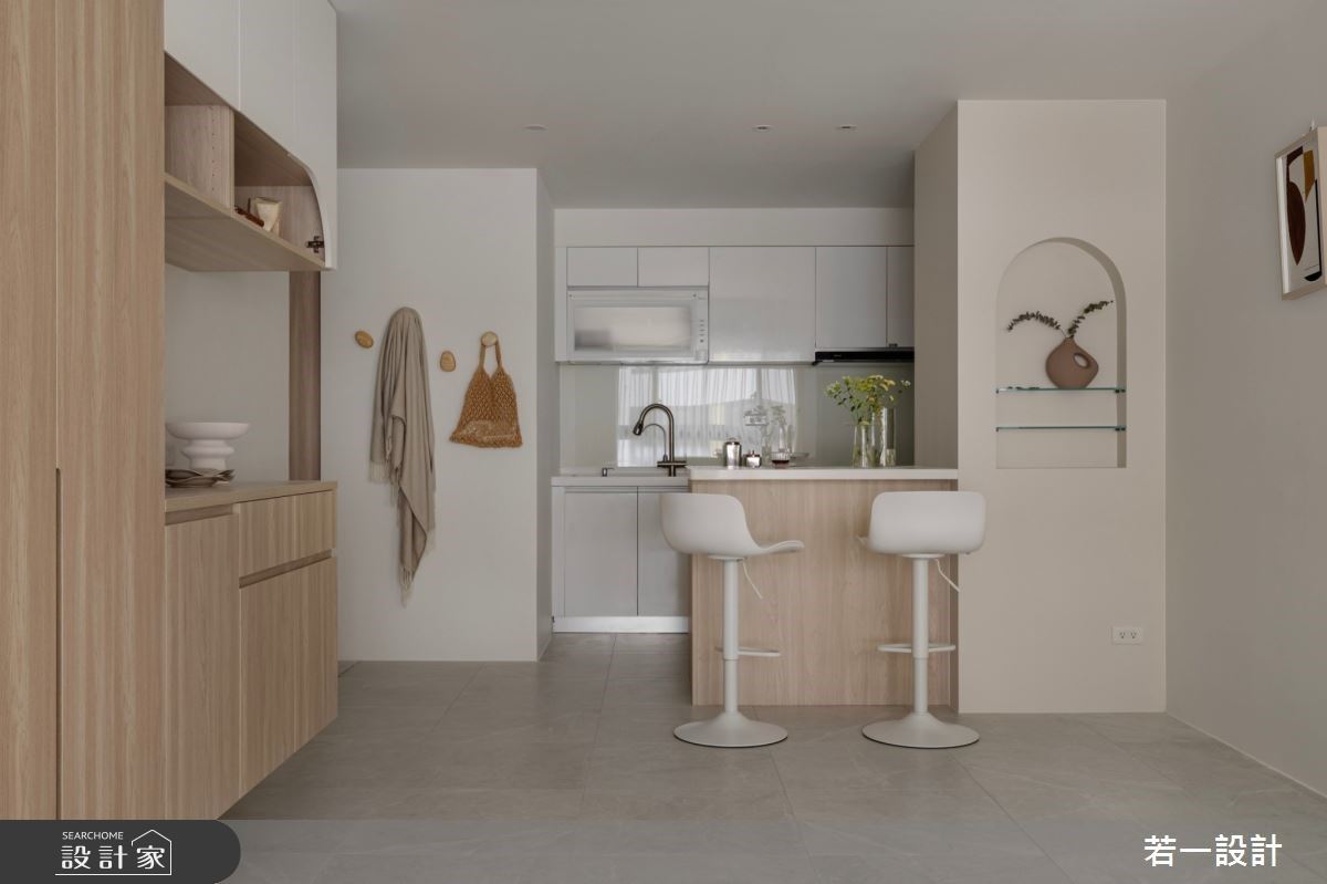 30坪混搭宅,設計師透過拆除既有裝修、格局的審慎規劃,將齊備的2+1房2廳帶入一家三口的未來居所,並在有限空間內配置一座中島及電腦間,圓夢夫妻倆的電玩及烹飪夢!