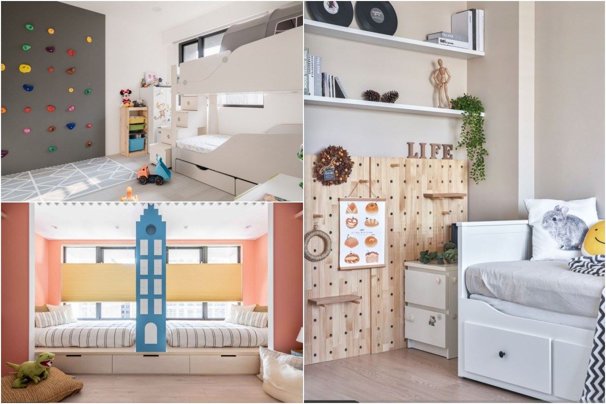孩子隨地亂丟的玩具及書籍快要讓你抓狂了嗎?還是已經拿著皮鞭準備狠狠地痛打一頓了?別急別急,在為孩子進行居家設計時,一定不要忘了要有足夠的收納的規劃設計,而且收納系統最好是可以靈增增減或分割的,學齡前可以拿來收納玩具,進入學齡期後則可以當成書架或置物架,以活動層板收納方式來取代掛桿,學齡前建議層板位置規劃在下半部,才能讓他們方便收放及拿取,使用上方便了,雜亂就會少一點。