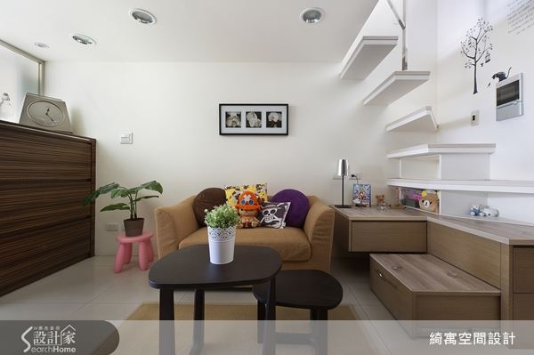 本設計案為挑高3米6小坪數格局,由於整個空間以夾層設計將家分為上下二層,因此除了盡量滿足屋主的收納需求,讓空間舒適而具有設計感,也是屋主的期待之一。