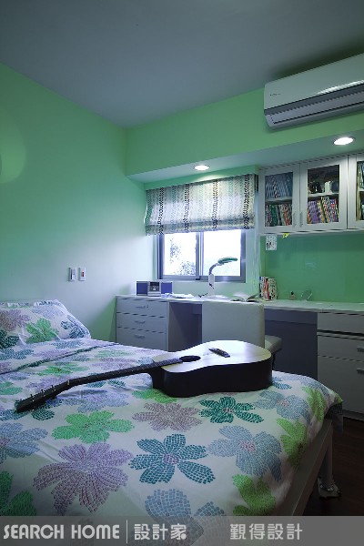 白色木作、綠色牆面,木質原始紋路展現居家的溫馨氣息。