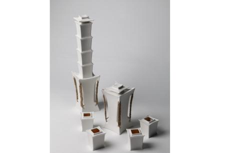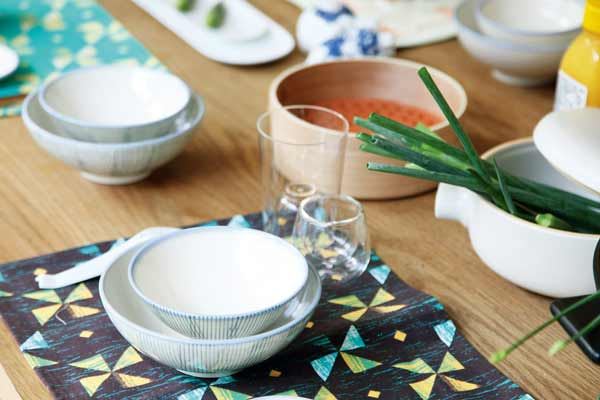 靈感來自北宋,汝窯青瓷蓮花式溫碗,呈十瓣蓮花式,全白陶瓷搭配碗腹圓弧造型,給予溫潤的觸感;後者則是以兩個菱形重疊一角組合而成,做工精緻且簡潔俐落的線條勾勒出造型逗趣的實用桌上器皿。
