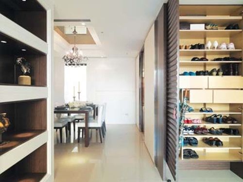 玄關鞋櫃可以外出鞋與便鞋為主,而特別的與較好的鞋子則要另外收納,不應該只以玄關鞋櫃方式來收納,這樣才不會造成鞋櫃爆滿,也符合生活空間的使用管理。搭配或蒐藏用的鞋子,可選擇半透明的鞋盒收納放至更衣室或衣櫃中,堆疊起來不但省空間,也能直接看到裡面的鞋子,不需要把每個盒子打開才找得到要穿的鞋。