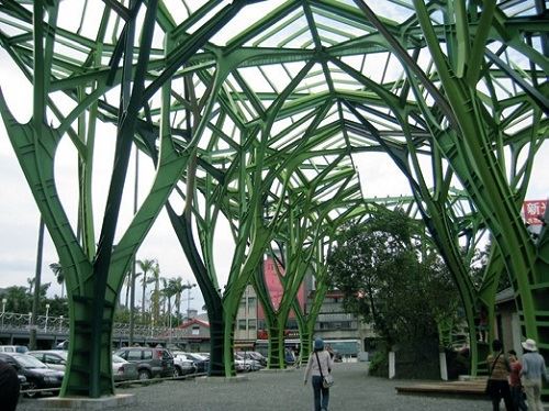 Point1. 階梯狀的隱性動線指引。階梯狀建物外觀引領人們視線往天空停留,間接保護室內生活隱私。