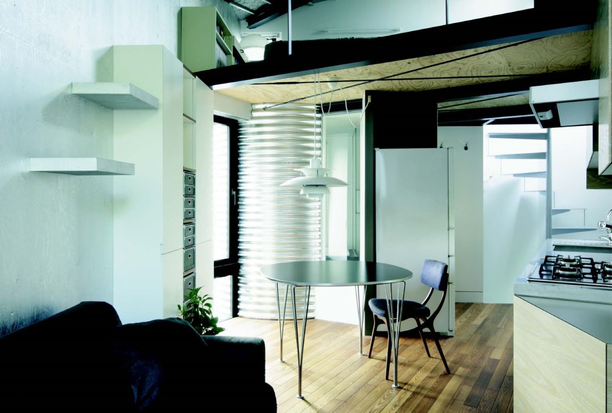 Point2. 階梯挑高空間創造開放空間感。開放式的客廳讓屋主的學生、朋友能在此聚會、交流。