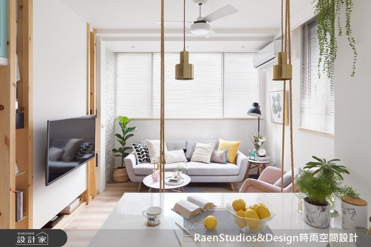 設計師表示,本次設計將重點擺在放大空間、控制預算與創造北歐質感的風格,因此精簡運用建材,以營造出符合屋主想像中的居住環境。在客廳的設計,電視牆結合木作、文化石與烤漆帶出視覺的層次。