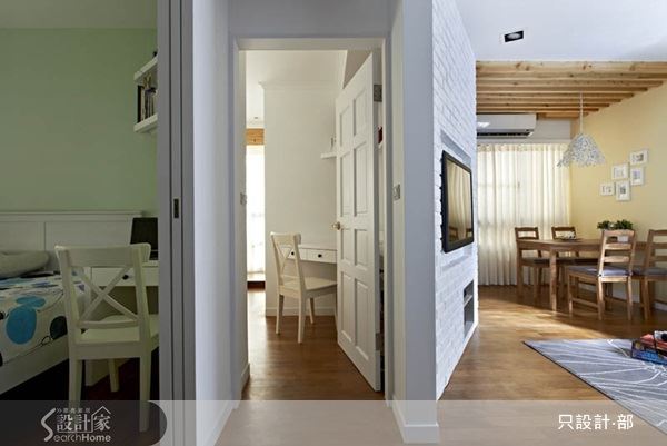 本案屋主正是鄉村風格愛好者,在預算、空間都有限的狀況,仍希望可以擁有美式鄉村風住家,因此,裏心空間設計/RSI+2的設計師李植煒與廖心儀以白色為空間基調,運用修飾壁板、文化石等美式風格的元素,並利用,壁紙、家具、窗簾、吊燈等大量裝飾配件,成功地在原先規劃的預算內,為屋主打造出豐富動人的鄉村風居家。