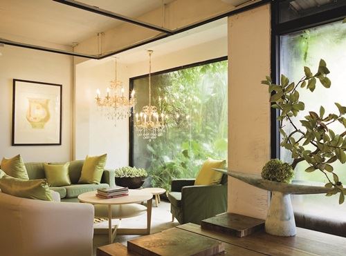 擅於手作的Julia,用撿拾來的廢棄窗框及木片,在書房壁面上訂製一扇刷白的窗子,各樣乾燥的穗花與花器,就成了窗子中最美麗的風景。