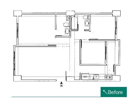 部分建商出於商業考量,常常以「創造室內最多房間數量」為目標去規劃室內隔間,結果,過多的隔間卻造成客廳狹小、房間更狹小的狀況,例如本案的屋主就不甚滿意建商最初的格局規劃,在與深藍設計的設計師討論後,決定重新規劃部分格局,但希望以最精簡、不花費過多預算的方式去做格局調動,最後設計師選擇只減少一面牆及調整一扇門,讓戶外涼風與光線更充分的進入屋內,沒有了實體隔間,只以一道電視牆分割客廳與書房區域,並在客廳、書房區域打造溫暖的木質地板,成功放大視覺效果,更提升了整體空間動線的流暢度。在控制整體預算的前提下,設計師成功地將預算控制在300萬以下,為屋主打造出清爽簡單、讓人倍感舒適的自然風格空間。