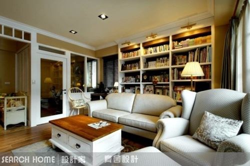 設計師發揮創意,將書櫃與書桌合為一體,形成一水平面,讓整面牆的視覺感更富有層次的變化,同時也兼顧了實用性。而白色線板的語彙更為空間注入了美式復古的情調,別有一番風情。