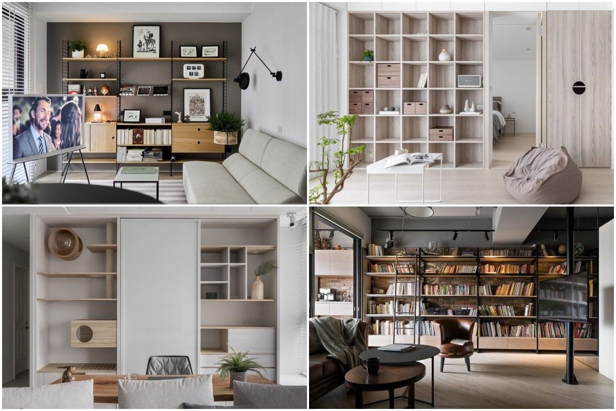 書籍的收納也是對設計師的重大考驗之一。必須考慮什麼樣的材質能耐受書本的重量、各種尺寸的書本該如何各就各位等等問題。常見的設計手法是將一整面牆面設計為書牆,一方面增加收納空間,另一方面也能讓書香味成為空間的風景。不過,書牆設計若是過於單調,反而會顯得雜亂,以下介紹幾種結合藝術美感的書牆設計,提供大家參考。