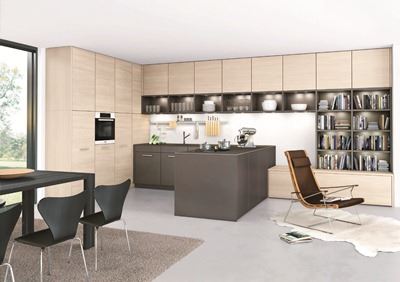特殊的直角開門方式,內藏了玻璃層板,可擺放杯盤等器具,賦予轉角優雅的收納功能。請電洽02-2546-3000