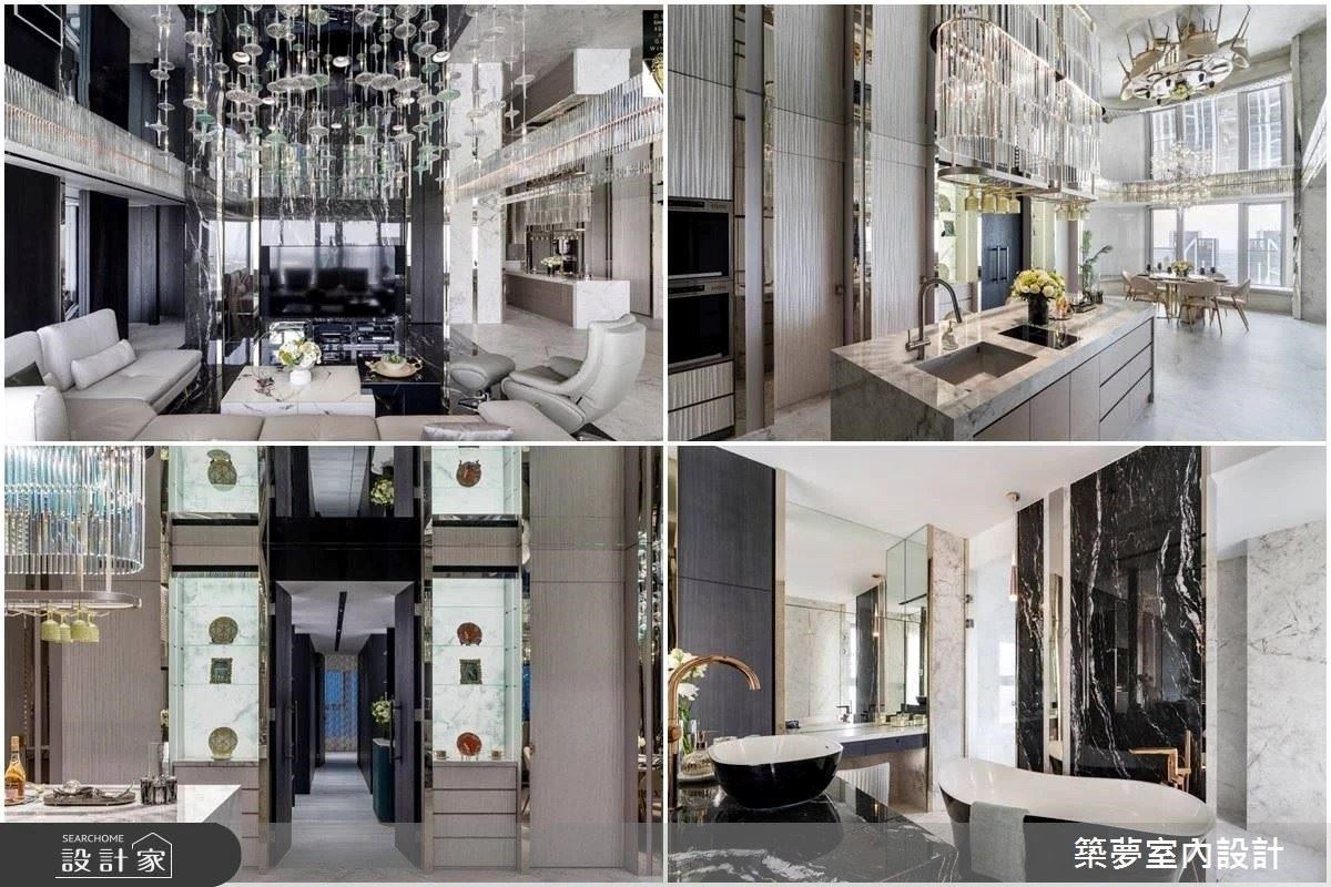 大膽在客廳使用極具現代感的英國 Tom Dixon 的造型燈飾,並在開放相連的餐廳掛置古典優雅的義大利 Beby Italy 水晶燈,同時以 Schonbek 的水晶壁燈做為妝點,創造出耐人尋味的 Art Deco 風格。