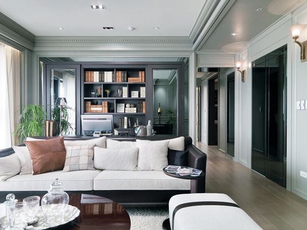 Emma 表示,其實一開始跟先生就希望這個家是走「Art Deco」的風格,裝飾藝術在歐美是非常盛行的,也因為身為歐洲傢飾、家具的進口商,對每一盞燈和每一座沙發都有著特別的要求,在渴望呈現的風格上不斷反覆地和設計師溝通、討論,像是玄關櫃就挑了將近30款和設計師討論用哪一個才合適。而尚展空間設計吳啟民設計師也表示, Emma 是非常有想法的屋主,而且做的功課非常的充足,包括自己去找合適的建材或喜歡的家具、燈飾,經過彼此的討論可以激盪出不一樣的火花。