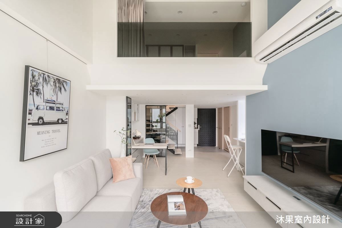 客廳主牆面以白色文化石打造而成,石材本身特殊而樸素的自然紋理為空間帶來清新的生活感。