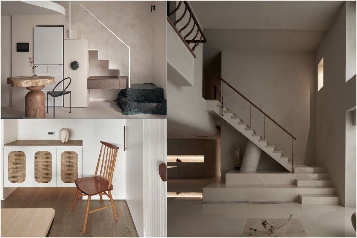 有別於一般設計師的思維,朱志峰考量到屋主渴望對於「放鬆」和「舒適」的需求,他將空間用色盡量地簡化,以大地色為基調,取自大自然的元素,大量使用木材質,亦透過多扇大面積的玻璃窗借景,讓屋外視野及光線豐富空間表情;由電視牆一路延伸至餐廳區域的大塊面積壁面鋪滿漳浦黑石片,成功營造出天然樸實的休憩氛圍,公共空間的整體設計感更加完備。