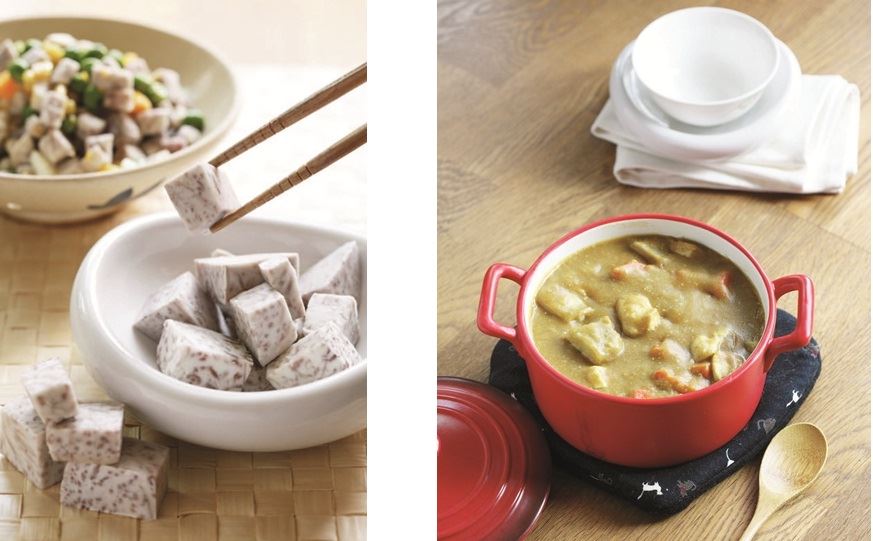 03_ 能製作多元性的食品芋頭除了可充當主食,也可當作菜餚和甜點,像是芋仔冰、芋頭餅、芋粿等,都是很常見的芋頭食品。
