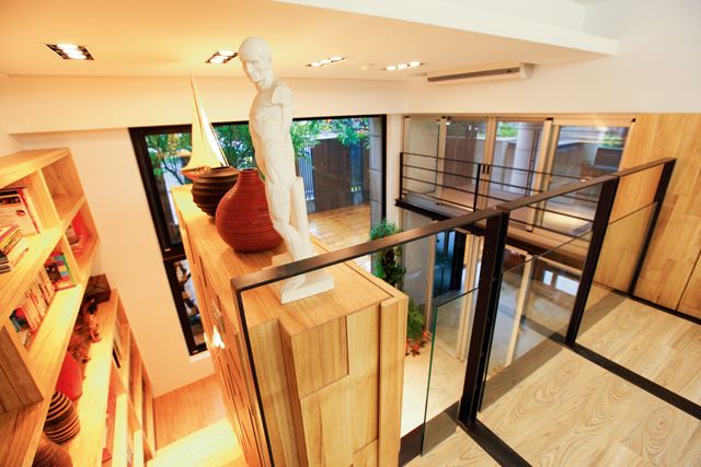 客廳轉角的廊道,不僅結合書房進行雙面櫃設計,更將家庭的生活照片轉化成最佳的藝術擺飾,提升整體質感之餘,也為空間注入濃濃的人情味。