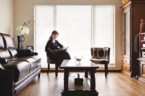 地坪的材質、色調、觸感都是鋪陳空間調性的重要元素,居住者可依空間的不同特性來選擇地坪,例如公共區域如客餐廳等,重在營造明亮遼闊感,可以選用拋光石英磚;至於較為私人的臥室空間,則可以選擇質地舒適的木地板。