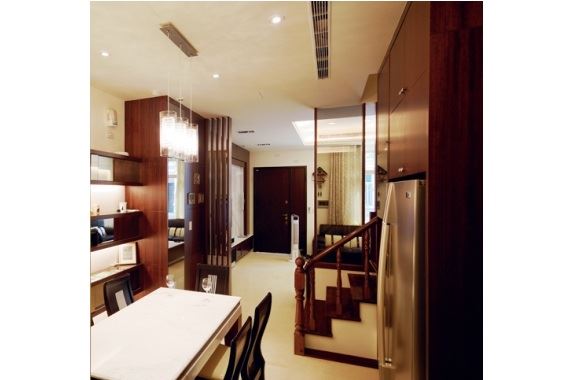 若不想設計踢腳板藏匿管線,讓管線沿著天花板走,則是另一種解決風水顧慮的設計手法。