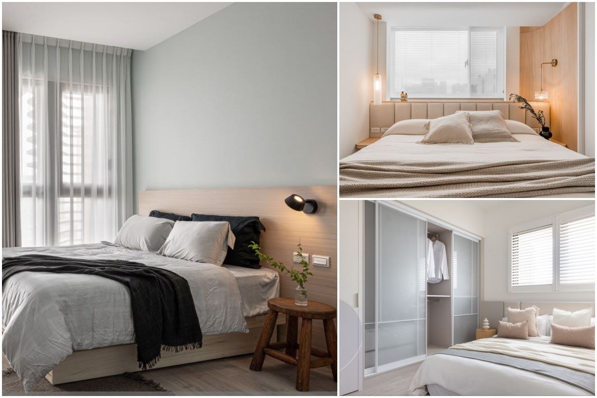 所謂的床後無靠,除了完全空蕩之外,只靠著柱子好像靠了一半,也算是「床後無靠」的一種,這樣的狀況建議可在床後設計可收納棉被、寢具的床頭櫃,以補齊空缺的部份,解決問題之餘還多了實用收納空間。