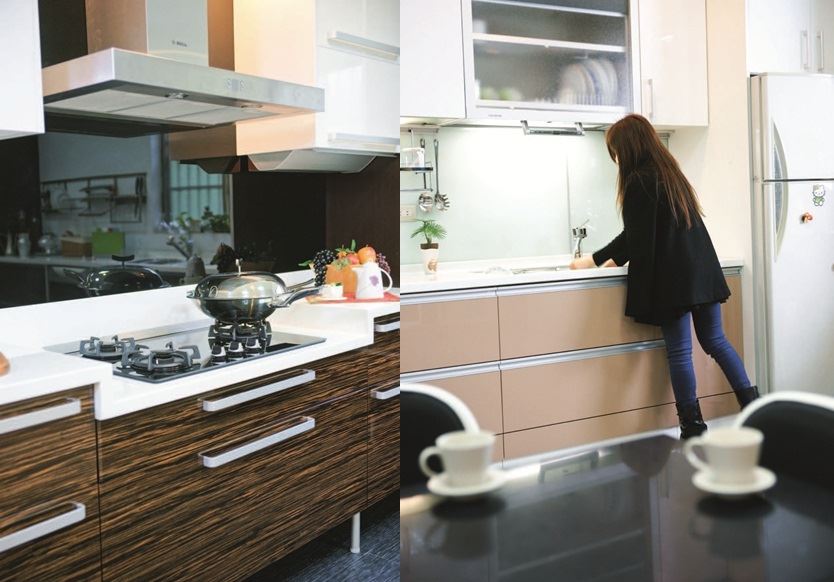 設置在水槽上方的吊櫃式烘碗機可成功利用空間,常見使用於都市區的小坪數住宅中,但是對於嬌小的人來說,有時要將重量不輕的碗盤一個個往上放,等於是在練臂力,但吊櫃式烘碗機若設置過低,又會影響水槽使用空間。