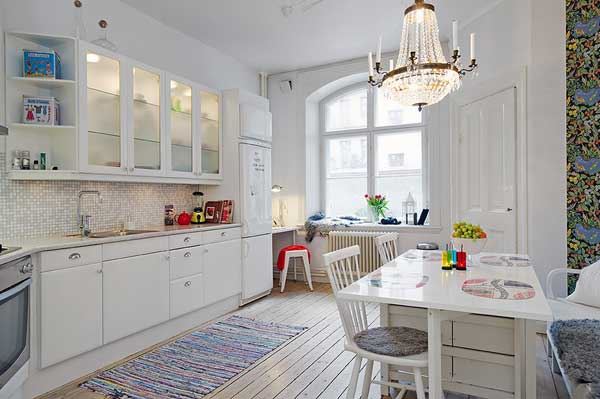 位於哥得堡市中心的老公寓,經過貼心的設計改裝,坪數雖小,卻應有盡有!讓人安定放鬆的白色好眠區,巧妙設計輕隔間和客廳相鄰,同時可以輕鬆走進更衣間,更衣間不但能把雜物衣飾好好隱藏收納起來,使用和動線都更加便利;清爽宜人的客廳裡,有歡迎賓客的多功能沙發床、留白的層架閱讀區、輕巧的原木咖啡桌,隨時調整家具位置,馬上就能融入愜意生活,餐廚的表現也很迷人,舒雅的色系配酷黑廚具,上方的木質吊櫃是1899年的老物新用,特別有味道,北歐人最愛的露臺自然不可或缺,擺上簡單的戶外家具,增添值得你日日呵護的活力小植栽們,甜蜜雙人小宇宙全都在掌握之中。(出處)