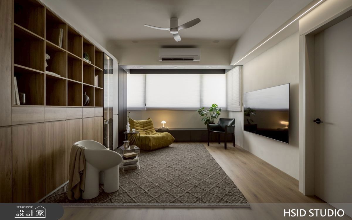 以木質感堆砌的家中,閱讀空間當然少不了同屬性材質的木質桌,保有一完整三面空間,以書架、置物櫃做為區隔,可做為裝飾、擺設用途,身後仍保有明亮的採光,為提升精神、思緒暢通的必要條件,為一令人身心沉澱的思考空間。
