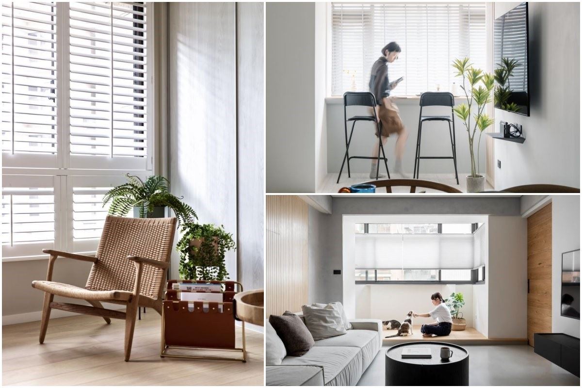 一樣只有12坪的小宅裡,在一塊空間角落放一盞燈、鋪一塊地毯,可以自己在DIY加一個小茶几跟靠枕,設計師貼心將空間做了這樣的變化處理,讓居家風格驟然活絡起來。