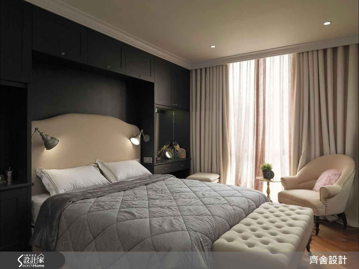 本案設計以現代古典為基調,講求在優雅的氛圍中不失休閒感。設計師在主臥室除在靠窗處擺放了一組閱讀桌椅,床頭設計也運用古典風格的對稱語彙,讓整個空間看來更穩定。