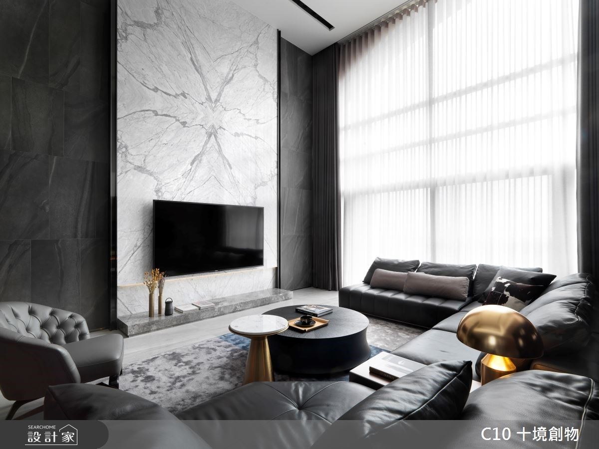 想要讓空間展現高貴典雅的氣質,大理石材絕對是超經典的材質之一!一般常見的用法是利用大理石來打造電視主牆,本案則改用為沙發背牆,反而更完整地展現了大理石優美的自然紋路,營造舒適又雅緻的氛圍。