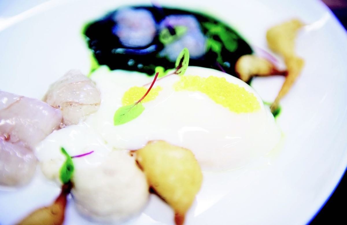Primeur chicken with new potatoes, aged cheese and fresh garlic 經過烘烤及燉煮的小春雞,柔軟又酥脆,再加上和著奶油食用的新鮮馬鈴薯球,濃郁的奶油及起士香味,讓人感受不同的豐富口感及層次變化。