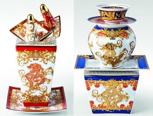 The Legend of the Dragon是今年Rosenthal與Versace結合設計的系列之一,是Versace對中國農曆新年,龍年,致上敬意:創新,勇敢,成功,和歡樂。 這股對中國傳統藝術的召喚,帶上鮮豔的圖案及色彩:朱紅,金,藍等三元素,在凡賽斯工作室已經被讚頌一番。中國人心中的龍,象徵著力量及榮耀,背景以金色為主調,更強化了財富這個元素的意象表現;金碧輝煌的巴洛克圖騰以及四個大徽章代表著太陽,徽章中間則以梅杜莎頭像點綴,串聯出VERSACE最重要的品牌元素。