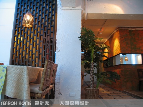 想營造自然休閒風格,除了窗外綠意,適度在空間妝點清新綠意也是相當重要的。進入二樓的樓梯旁側,特別規劃一座小平台,簡單擺上一盆黃金葛,讓其自二樓自然垂掛至一樓,自然而優雅。