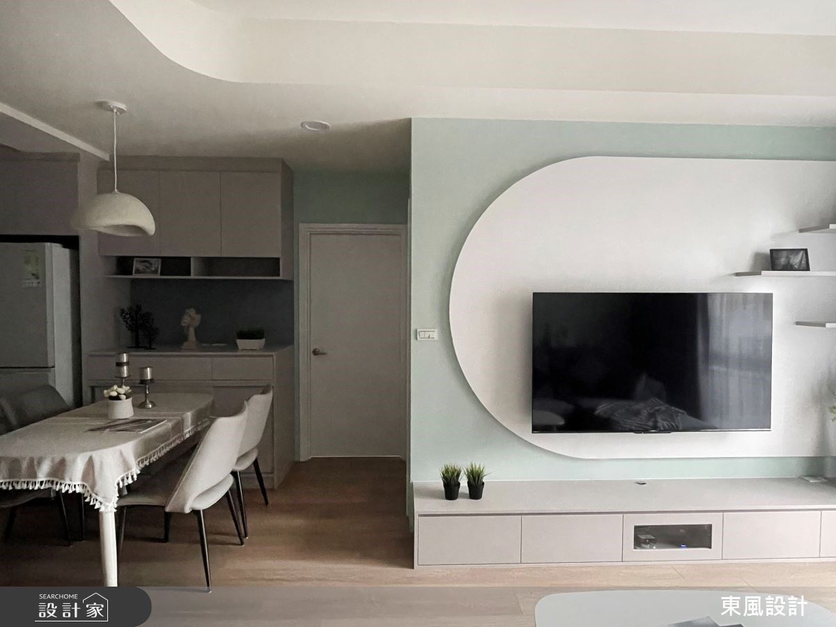 電視牆同時也是隔間牆,藉由櫃體當作隔間牆設計不僅放大機能,也讓動線更加自由。