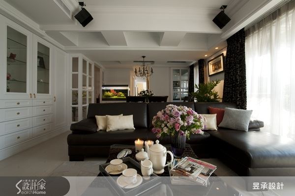 本次,劉嘉雯也充分運用她家具擺飾陳列的功力,在客廳運用沙發對坐的方式,有別於傳統三二一擺設,展現出的是大宅的典雅及宛如漢普頓宅邸的美式空間佈置方法,而兼具書櫃及壁爐效果的隱藏式電視櫃,不但將科技產品巧妙包裝進美式古典設計中,也可視需求隨時展現機能性。