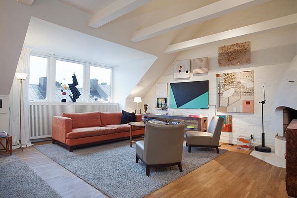 這棟迷人的閣樓之家,座落在瑞典西南部,大都會總人口將近十萬人的第二大城─哥得堡( Gothenburg )市中心,三個空間裡各有靈感巧思。小公寓位於維護良好而浪漫的新藝術風格建築內,歷史可追溯至 20 世紀初,從頂樓就能欣賞這個美麗港灣的城市脈動,而且有電梯讓舒適的抵達 6 樓。推開大門,熱情歡迎屋主回家的是走廊左側的三個大衣櫃,充分收納永遠是讓人從容出門的不二法門。開放式客廳和餐廚區,保留空間使用的靈活性,在這裡,最令人羨慕的大型書庫完美的從地板延伸到天花頂,整間屋子都因為這片牆而生動豐富。半圓形的立體窗口迎接自然光線,將頂樓的挑高空間填滿新鮮活力。兩間臥室並排,坐擁俯瞰天井的位置,標準的北歐式簡潔設計,恰如其分的留給私人空間最寧靜的放鬆環境,不禁讓人再度陷入閣樓裡處處有春天的幻想!