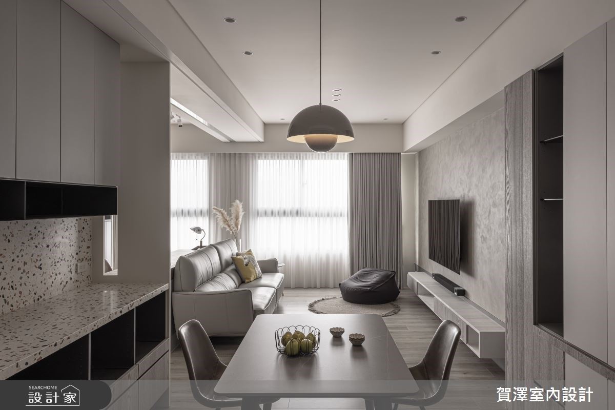 客廳與餐廚空間採用彈性拉門設計,平常不使用廚房時可以將拉門拉開,展現空間寬敞而舒適的遼闊感,而玻璃拉門也維持了光線的良好穿透性。