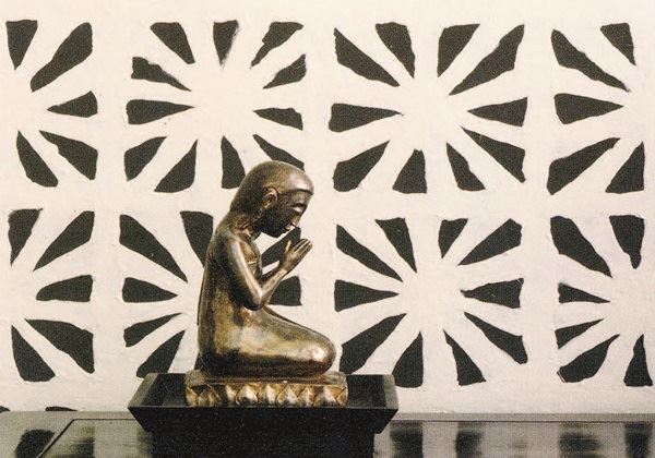 可塑性極高的壁紙也可以當成藝術品般妝飾空間,挑選圖紋較為強烈的壁紙,運用在廊道端點,與藝術品相襯,有畫龍點睛的效果。
