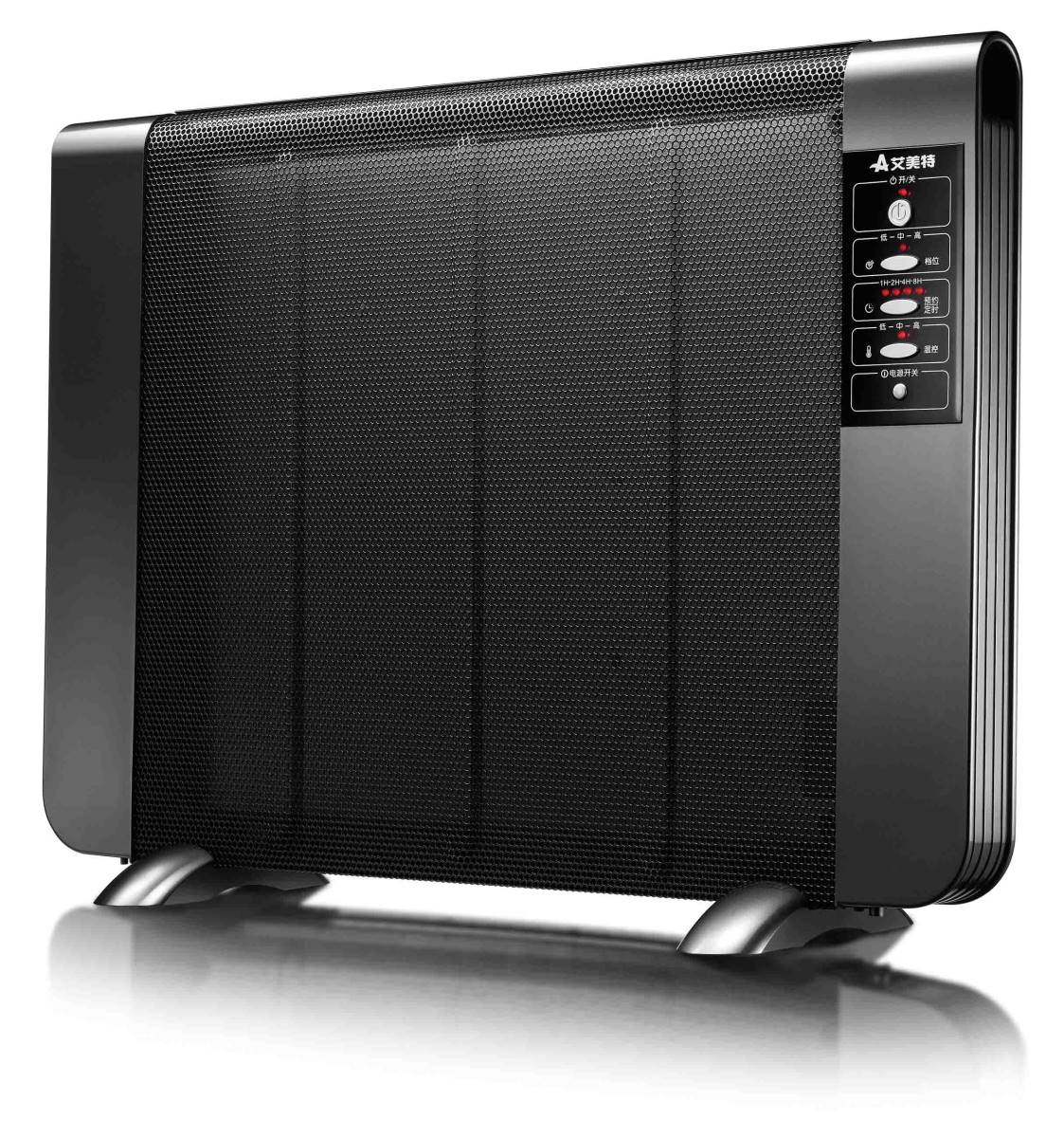 北方陶瓷遙控電暖器。採用 DC 馬達設計,具紅外線遙控,定時設定恆溫省電,進化的超薄機身與時尚黑色造型,為愛好黑色家電者必備的囊中好物。