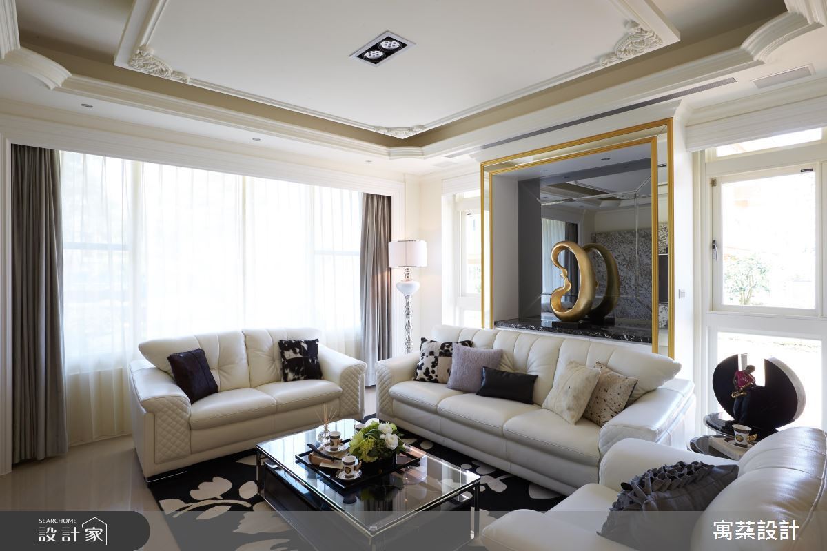 雙併格局打造出對稱工整的客廳設計,與氣派舒適的新古典傢具形成完美對話。