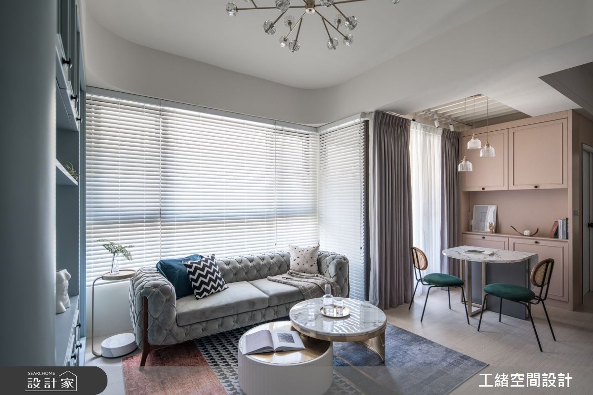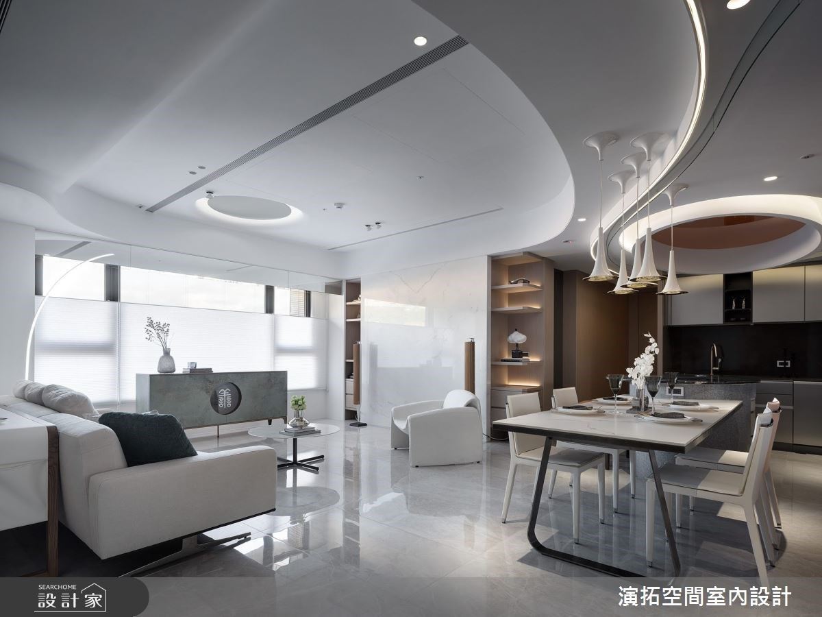 天花板的造型也是一大重點,利用線條柵欄的方式,加上燈光,讓客廳空間產生向上及水平延伸的視覺效果,不但放大空間,也解決空間裡大樑問題;簡潔俐落的線條讓空間更立體,也散發現代居家該有的空間質感及大器。