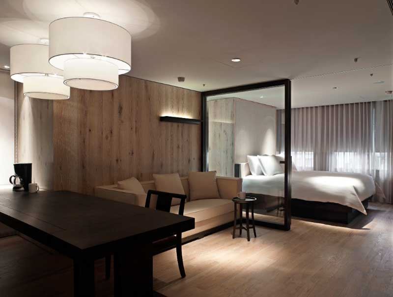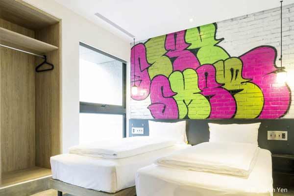 在國外風行許久的設計旅店,在台灣也出現,座落在台灣台南安平的觀光區,在獨立設計師 LEE 操刀下,主題就是旅店的名稱 RE+Wood Guesthouse,即“再生”+”木”的概念出發,大量的使用工廠剩下的廢棄木材,及各式各樣的環保材質,進行的旅店設計,同時也具有愛護地球的觀點。本案為一棟 5 層樓的透天,1 層樓規劃兩間雙人套房房間,走廊公共區域則設計成陳列空間,不定期的展示在地年輕創作者的作品,或文化產物。採用近年風行的 LOFT 風格,大片的採光窗戶,裸露建材本身的原色,配合工業風的傢俱,造就自成一格的旅店。
