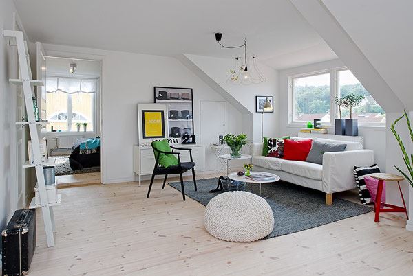 然而,北國的春天,不似南國早已有桃李漫舞,才正在融雪,讓人眼睛為之一亮的,往往是金色暖陽灑下,原野樹梢紛紛吐綠的景象,正解釋了這棟小公寓的色彩佈局:把大自然搬進家裡,讓純粹的白襯出綠的鮮翠,抱枕上的橙黃,和桌上的哈蜜瓜一樣甜美;木質咖啡桌有原色的樸拙,卻構成可移動的景色,端看今日新鮮插上的花束是甚麼心情,夜裡點上燭光,配咖啡或調酒氣氛各不同。屋主最愛這裡的柔軟的長沙發,陪伴她度過無數慵懶的小日子,毫不保留的承接下所有疲累後的重量。