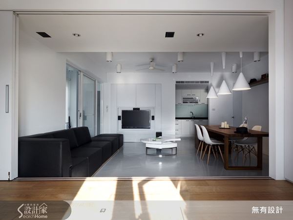 為了讓老屋的空間感煥然一新,並且改善空間潮濕的問題,設計師透過格局重整的手法,將客餐廳區域規劃為開放式空間,使客廳方向的採光面能更完整地導入室外自然光,放大空間感的同時,也讓光線與空氣更加通暢,潮濕困擾自然迎刃而解。