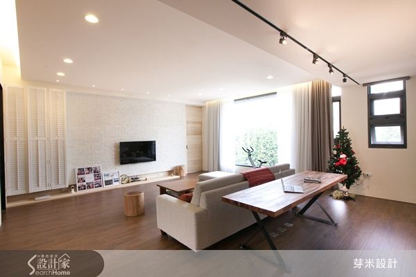 新手裝潢的夫妻檔面對18坪狹長形的小屋,多希望這個小窩能夠為乏味的生活帶來更多樂趣,於是,與大晴設計團隊開始計畫巔覆傳統:長形屋動線只能永遠的一直線嗎?當然不!電視牆後轉個彎,穿堂竟然變身為令許多女生尖叫的更衣室;誰說門一定要對稱?書房兼遊戲室的玻璃拉門刻意做成一大一小,為客廳引進更多的自然光。