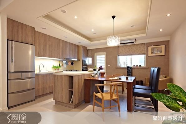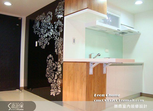 廚房、吧枱採半開放式設計,讓原本不大的空間有了多項機能使用的功能。烹煮和廚具收納功能完善的進口廚具,更有效發揮廚房空間坪效。左側牆面設計師利用設計巧思偷得小空間,讓清洗後的碗盤有很好的歸處;吧枱刻意模仿咖啡館吧枱高度,當有聚會人一多時,這裡便化身為輕食小酒吧。