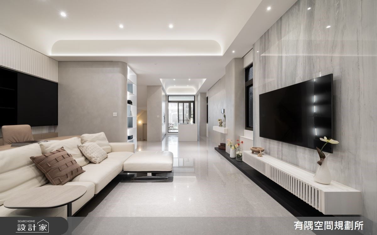 空間規劃要站在孩子身高來考量,才可避免孩子撞到櫃子、或造成孩子使用上不方便。櫃子尖角一定要避免,可使用倒圓或倒斜角設計,讓孩子可以盡情活動遊戲。客廳茶几四週做圓角處理,避免小孩去刺到或割到,而小孩房的床板四周也都做了圓角設計,非常貼心的細節規劃。