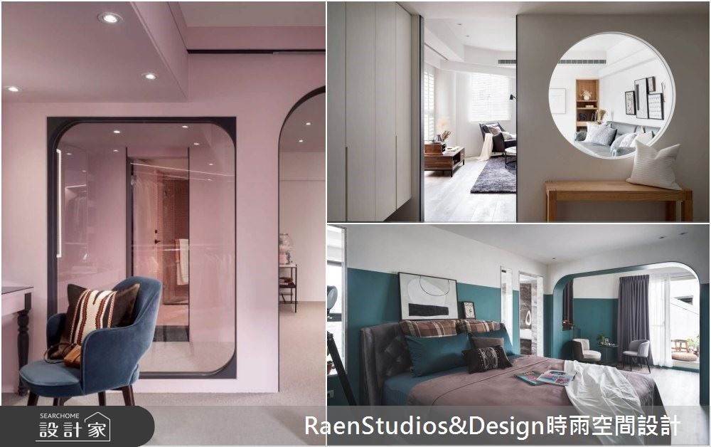 以建築思維進行格局規劃的巧妙,在於讓私領域的主臥,因鄰近主浴的廊道設計,當與牆等高的門片開啟時,就能與書房、餐廚區等公共空間相連;主臥自客廳區進入的動線設計,也與主浴廊道有異曲同工之妙,刻意拉高的門片設計,當門片開啟,就能讓兩個空間串聯,於是讓光與風,得以自在地在空間中流動。大片開窗加上精心規劃的陽台植栽,則達到引景入室的效果。