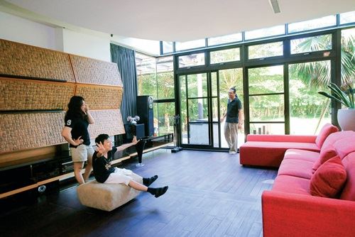 透過設計師的巧思,這個案例擁有大戶人家才有的獨立玄關,多建材混搭的客廳空間,大器俐落又帶點都會現代的時尚感,明亮黃的牆面,帶進了活力的氣息,與木質的溫潤質感,混搭出搶眼的視覺效果。在格局重整之後,屋主時而可在客廳與朋友閒談互動,或靠窗欣賞美景,也能和在書房閱讀的小孩,共度親子時光,多種的理想生活提案,讓人深深覺得有家真好!