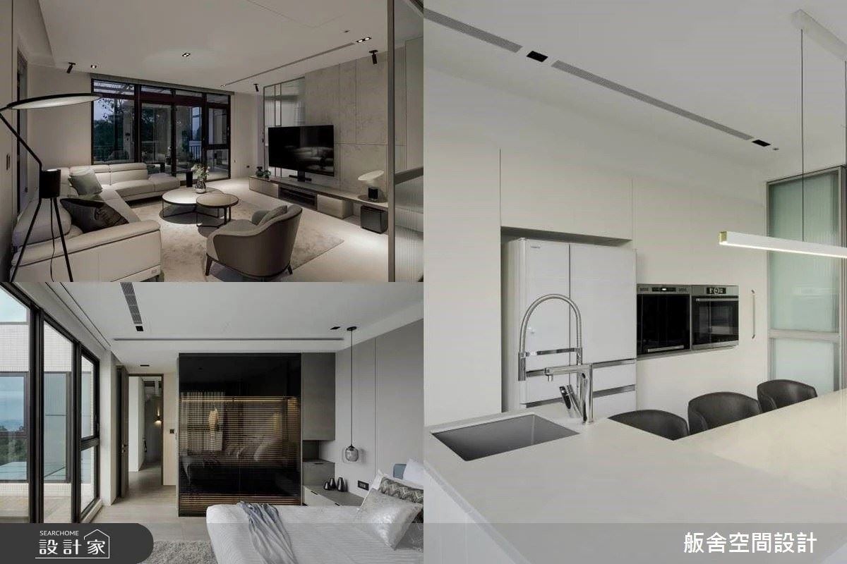 這間位於新北市的透天老房子,原本一樓的客、餐廳是放式設計,但是家人使用時往往會互相干擾,因此林設計師利用穿透的黑色烤漆鐵件搭配白色櫃體隔屏,區隔客、餐廳區,讓使用時不會互相干擾,再透過相同的超耐磨木地板材質讓空間互相串聯。串聯上、下動線的樓梯,則改成穿透的玻璃、不鏽鋼扶手,不僅讓空間更具現代感,同時也讓採光通透,減輕壓迫感。